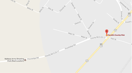 *Directions to Maltese Arms Shooting Club from Hwy 17: Turn onto Pocotaligo Road (between Harold's Country Club and the ball park). Follow the road until you see the Maltese Arms Shooting Club sign. Turn left and follow the road all the way back. You'll see the mulch which is where the range is located. Please refer to the map below. If you get lost, please call 843-604-ARMS.